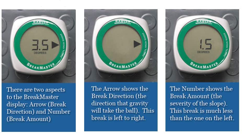 The BreakMaster Digital Green Reader is a precision electronic device that accurately locates the downhill direction (or break direction) of the green, measures the precise angle of slope (the amount or severity of the break) and provides a full readout of both on its LCD screen. This innovative device is changing the way Tour Golf Professionals and thousands of amateurs play the game. Tour Pros on the PGA, LPGA, Champions and other tours depend on the BreakMaster.