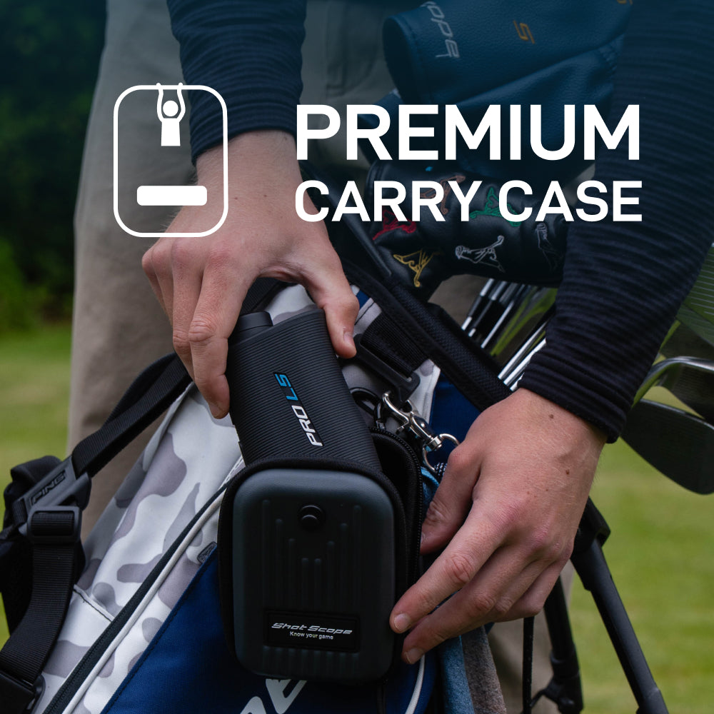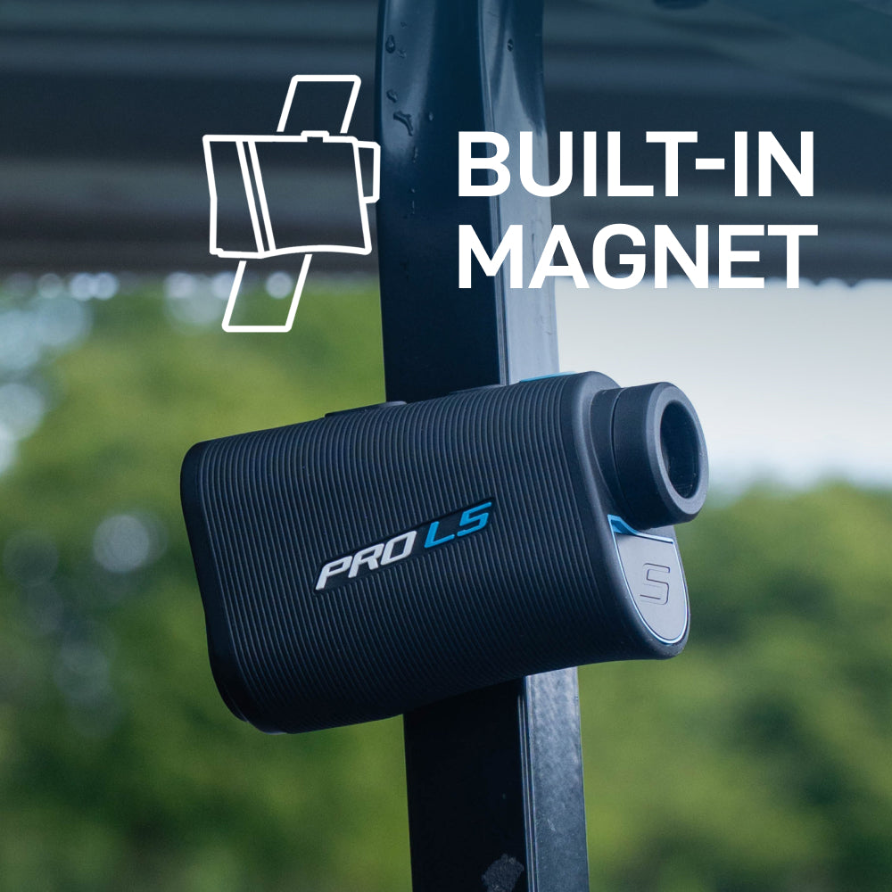 PRO L5 also comes with a convenient, extra-strong built-in cart magnet allowing golfers to keep their rangefinder by their side on the course. Alternatively, the premium carry case can be easily attached to a golf bag.
