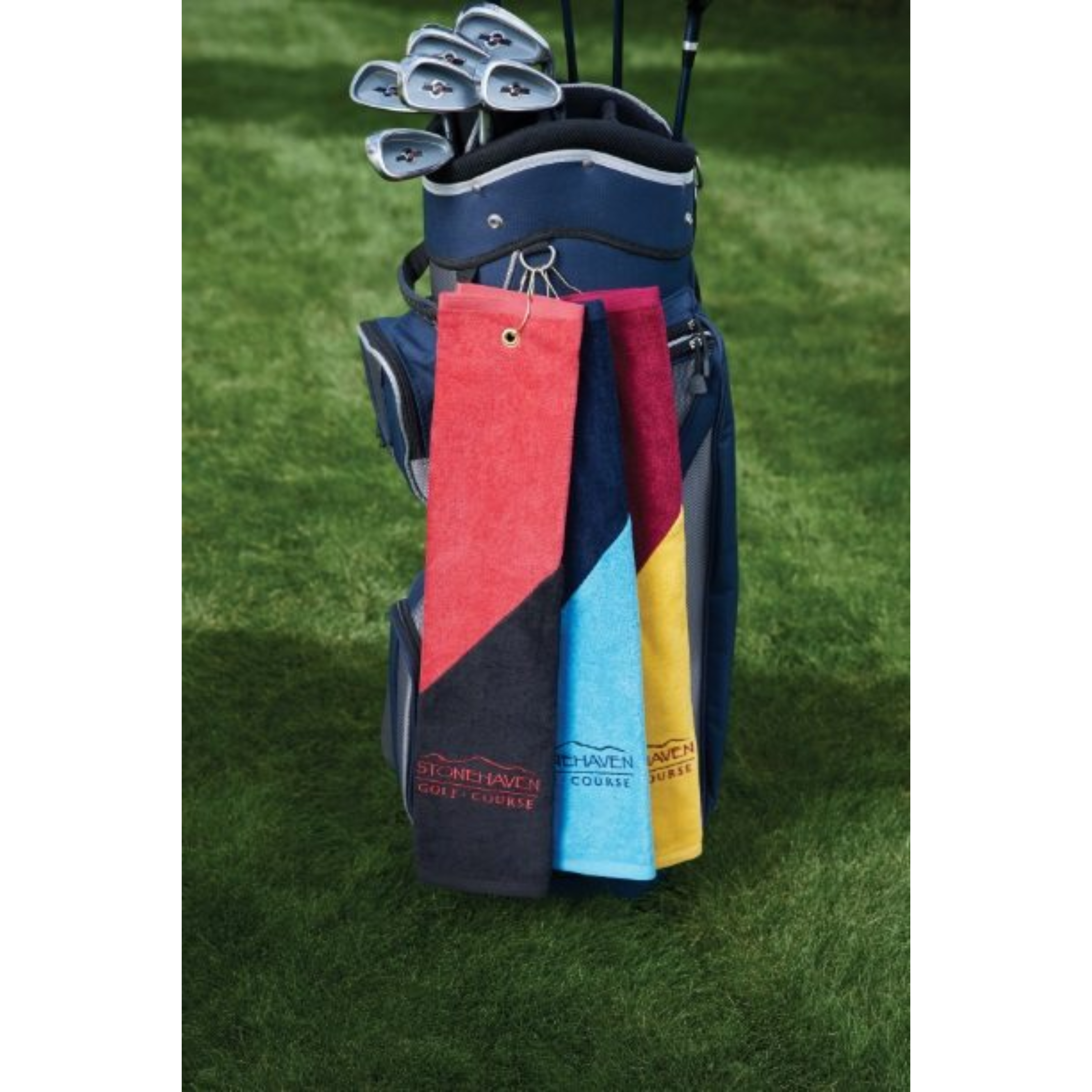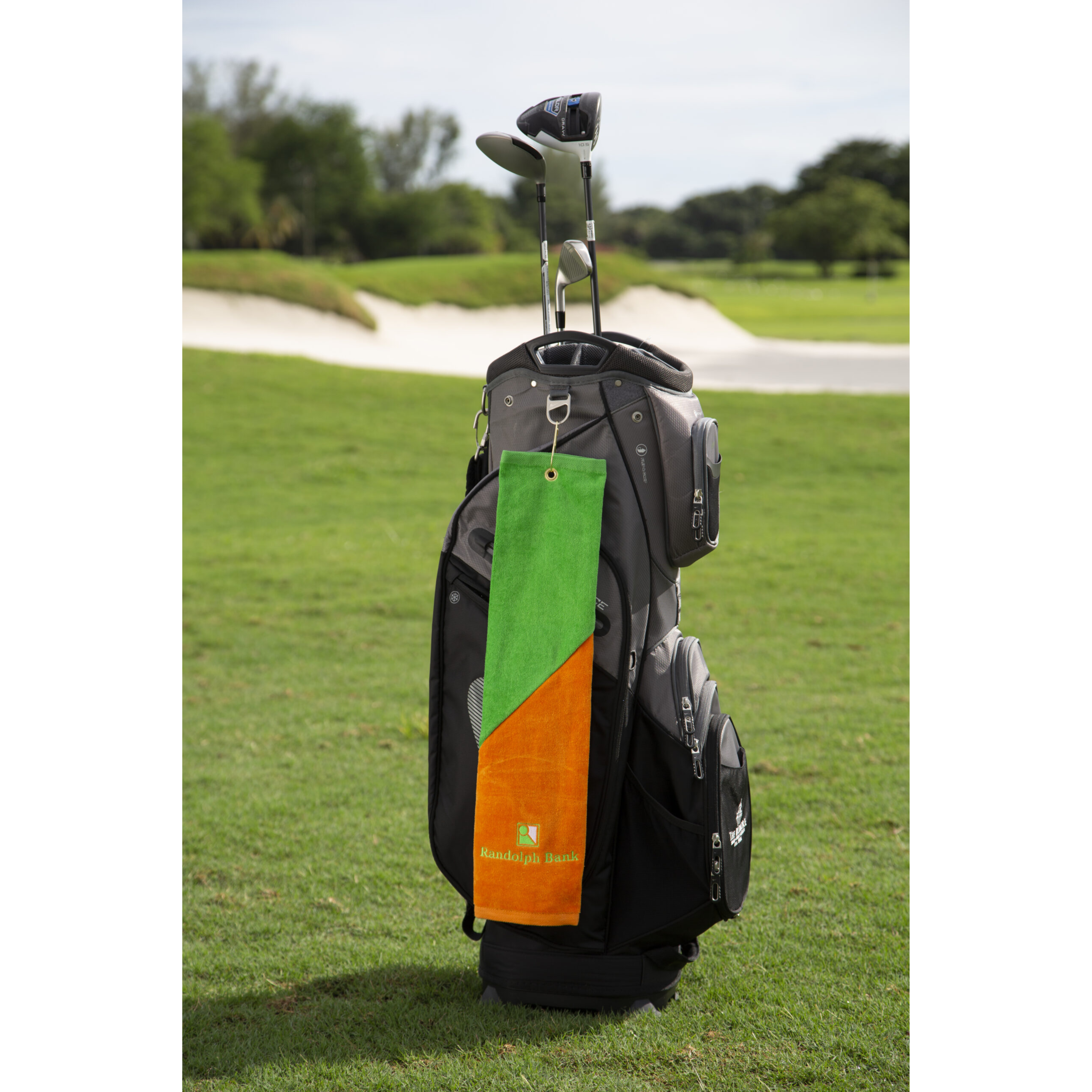 Offer a personalized gift that is sure to be a hole in one. This heavyweight, absorbent, 100% cotton terry velour golf towel comes in two tones, which can be selected to match your logo. Perfect giveaway for corporate golf tournaments, outings, golf teams or as a promotional item.